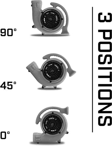 - 2 Speeds and 3 Positions - Highly versatile, this high-performance air mover features 2 powerful fan speeds. And 3 positions (horizontal, 45° and 90°) so you can direct airflow as needed